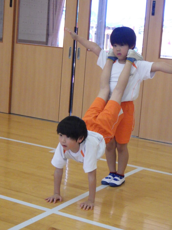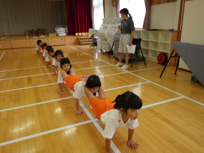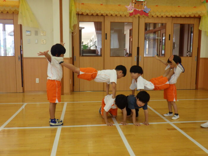うめ5歳児 ☆体操教室☆《うめ組》 2025年8月26日 86 運動会に向けて本格的に組体操がはじまりました。技の名前も教えてもらい、意欲も高まっています✨ 自分の位置や役割などもしっかり覚えながら取り組むことができています!! 組体操が終わった後は気持ちよくシャワーで汗を流しました☆