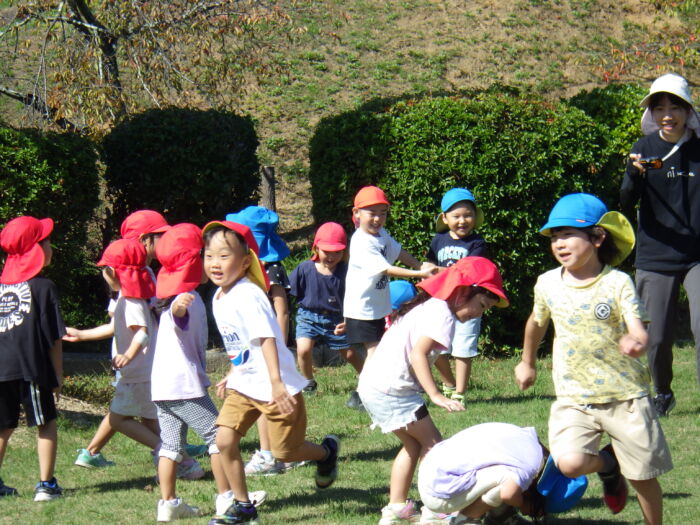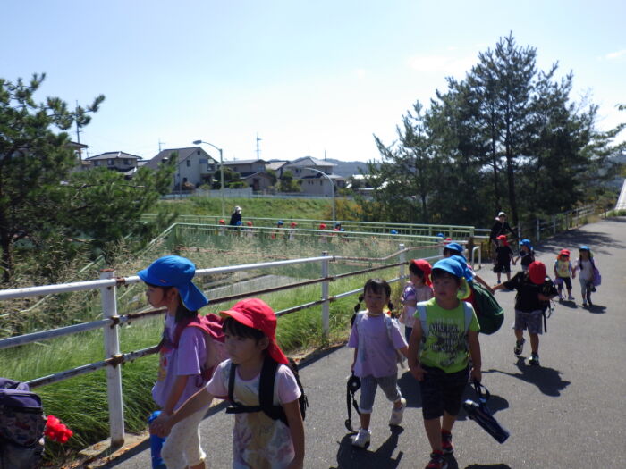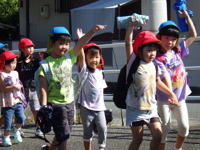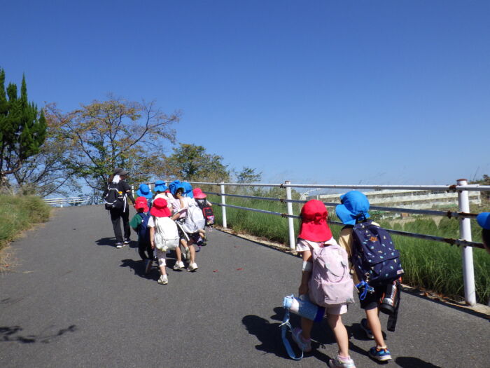 待ちに待った遠足の日!とってもいい天気でした。さあ、公園に向かって保育園を出発です‼