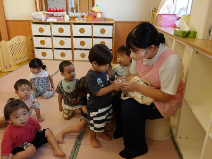 今日は実習生のお姉ちゃん先生が最終日だったので、お楽しみ会をしてもらいました。