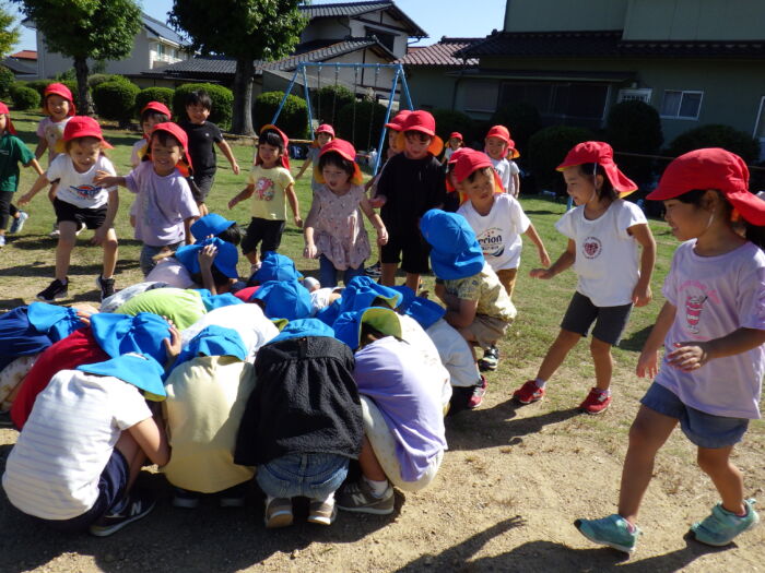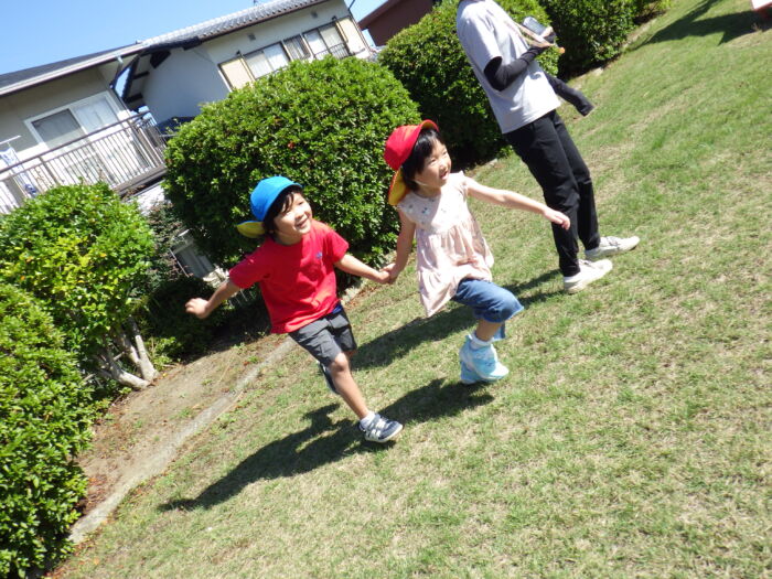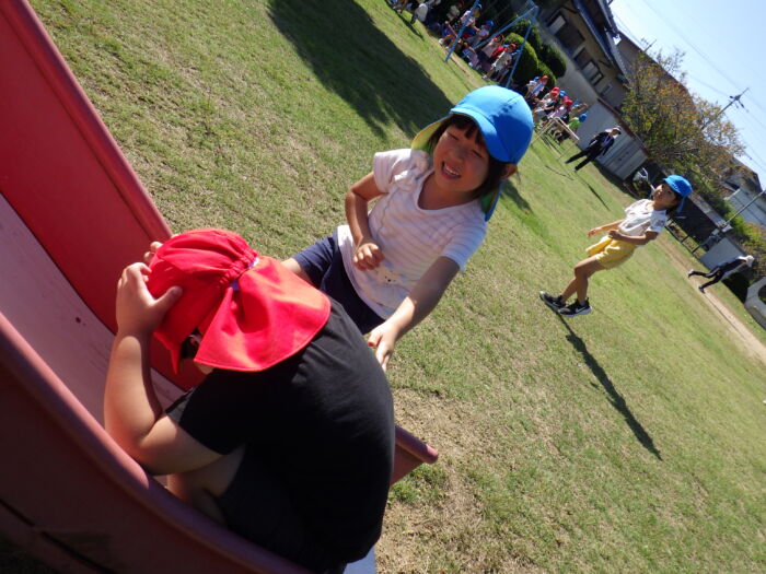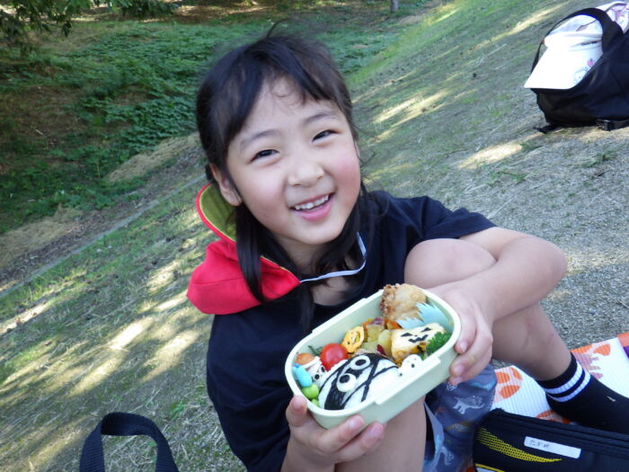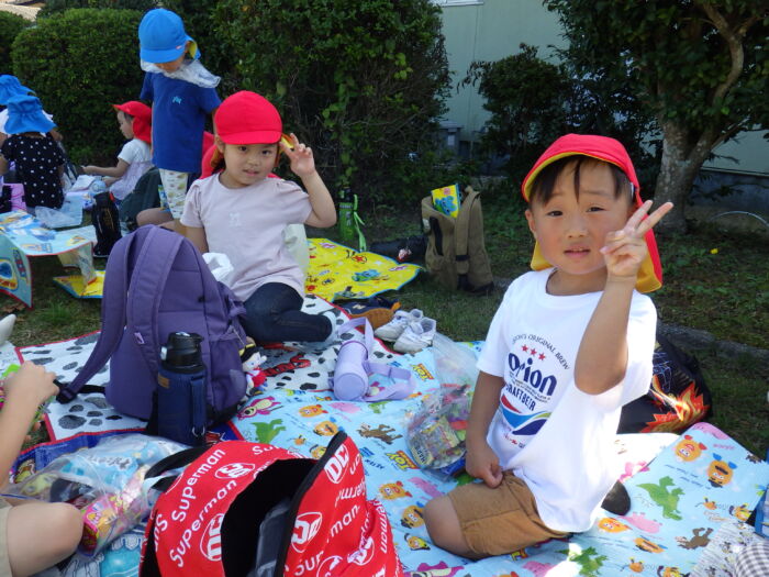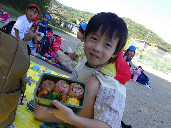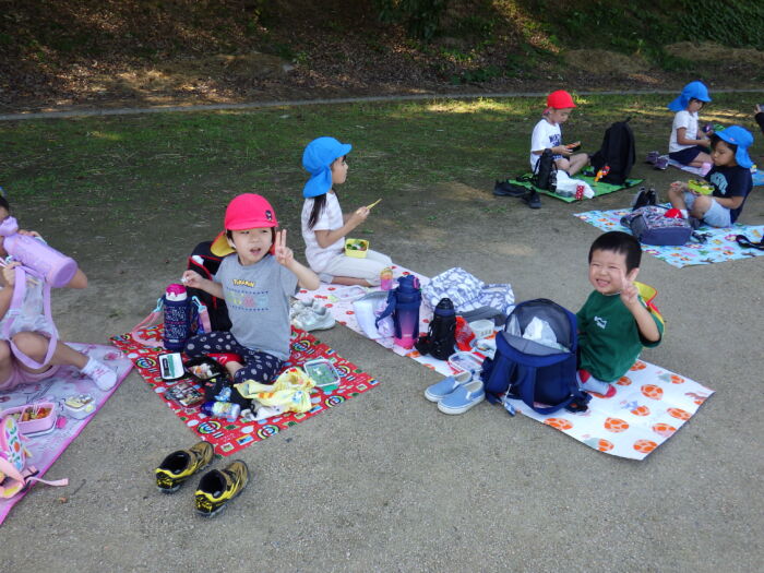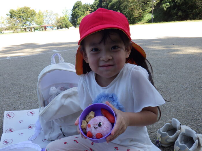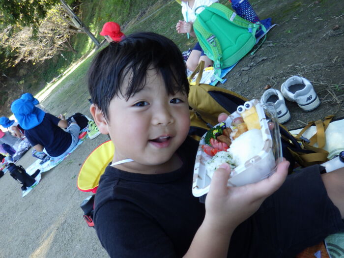 おいしそうなお弁当にニコニコの子どもたち!あっという間に食べ終わり、そのあとはみんなでリレーをしたり鬼ごっこをして遊びました。