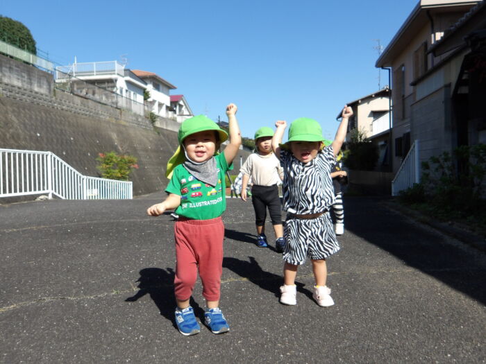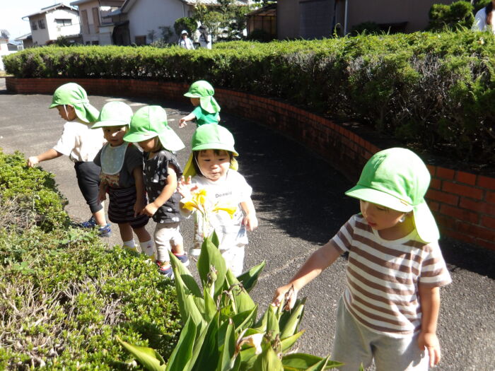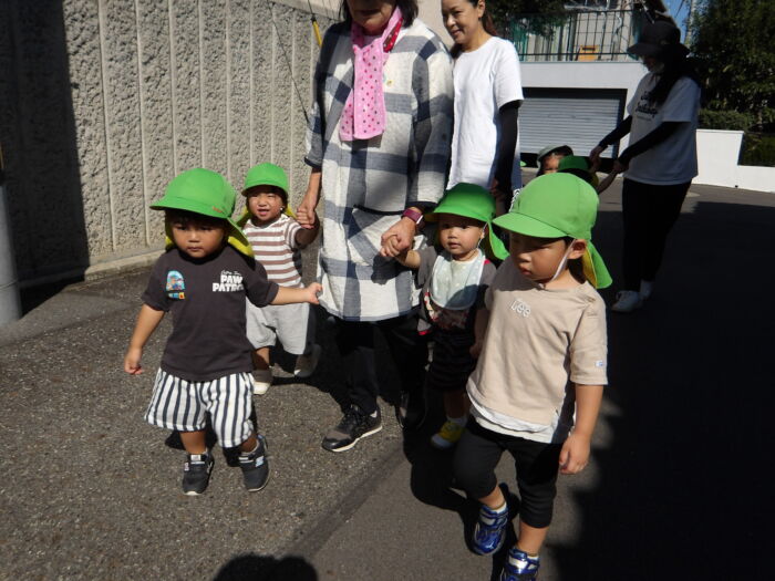 今日は遠足に行きました。ひまわり組のお友達は園の周辺を散歩しました。